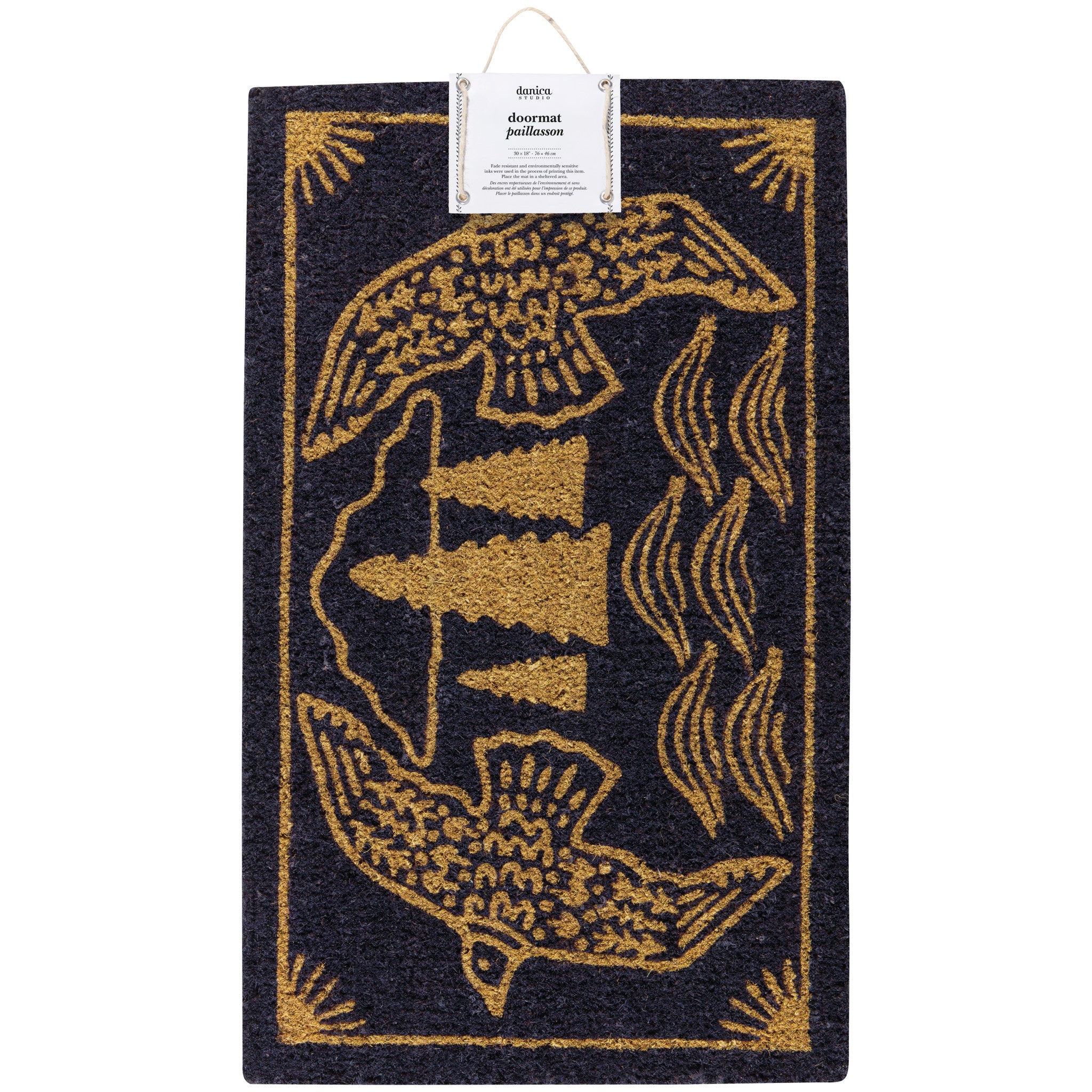 Step into a world of nighttime wonder with this Moonlit Coir Doormat. The deep navy hue sets the perfect backdrop for an intricate landscape of owls in flight, their silhouettes softly revealed by the natural coir. This doormat brings a touch of the nocturnal world to your doorstep, capturing the quiet majesty of the night sky. Perfect for those who find beauty in the moon’s glow and the flight of owls beneath its light.