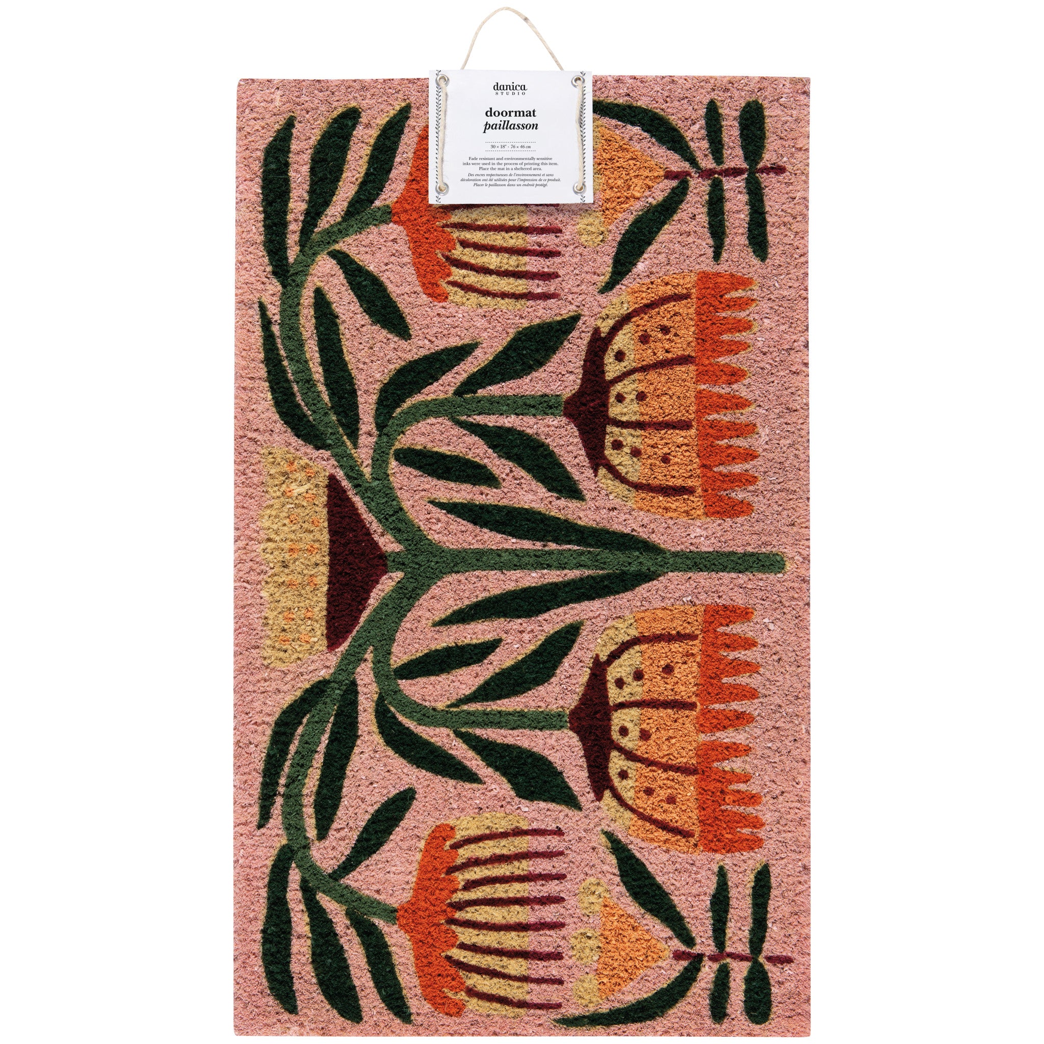 Welcome nature’s artistry to your doorstep with the Venus Coir Doormat. Crafted from durable, natural fibers, this mat features a vibrant floral design that blends rich ochre, burgundy, and soft pink hues. Its bold yet inviting style is perfect for bringing a touch of folk art charm to any entryway while keeping dirt at bay.