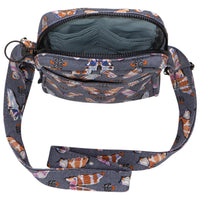 Designed for across town or across the world, the ever-popular crossbody bag gets an artful upgrade. With an adjustable strap, cell phone pocket, inner card panel, and zippered inner pocket, this bag is the lightweight and hands-free solution for running errands, sightseeing, or taking a nature walk.